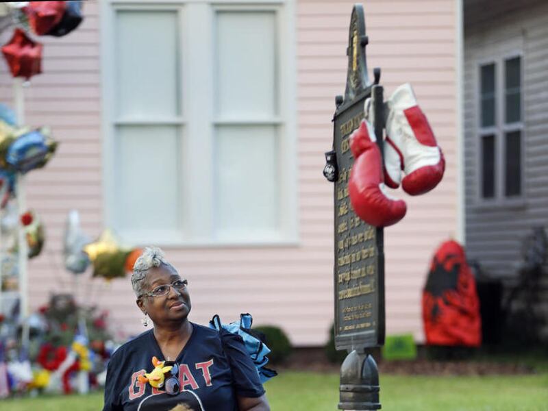 People gathered early Friday outside Ali's boyhood home, which was decorated with balloons, flags, flowers and posters. Fans took photos of themselves in front of the small pink house with white trim. Some people staked out their place near the home with lawn chairs.