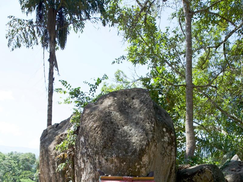 Small forest shines are built near a sacred “green tree” near which a small raised platform holds two uncarved standing stones (KJV “pillars”) wrapped in expensive cloth.