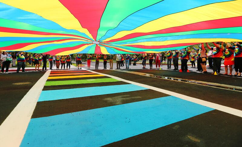 Aynoa Rincon, a student at SLCC, said Monday was the first time she attended an event in support of the LGBT community, but she hopes the crosswalk will be a visible token of appreciation for student diversity.