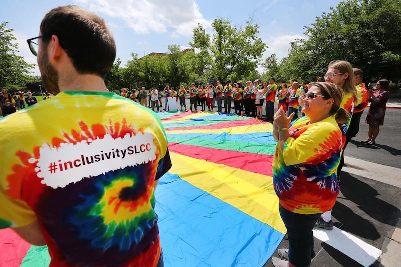TAYLORSVILLE — Salt Lake Community College dedicated a "pride crosswalk" Monday as a gesture of inclusivity for LGBT students, faculty and staff.