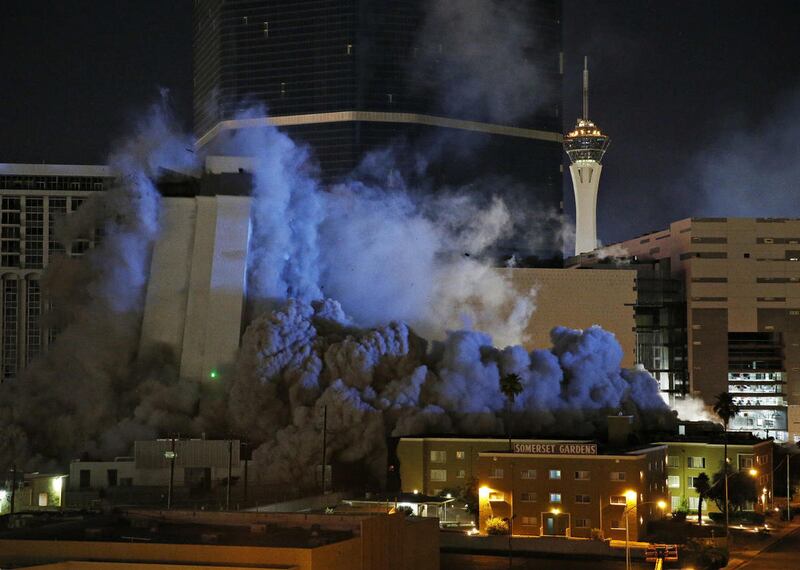 LAS VEGAS — The Riviera Hotel and Casino — the Las Vegas Strip's first high-rise that was as famous for its mobster ties as its Hollywood personification of Sin City's mobster past — officially exited the scene early Tuesday with a cinematic implosion, complete with fireworks.