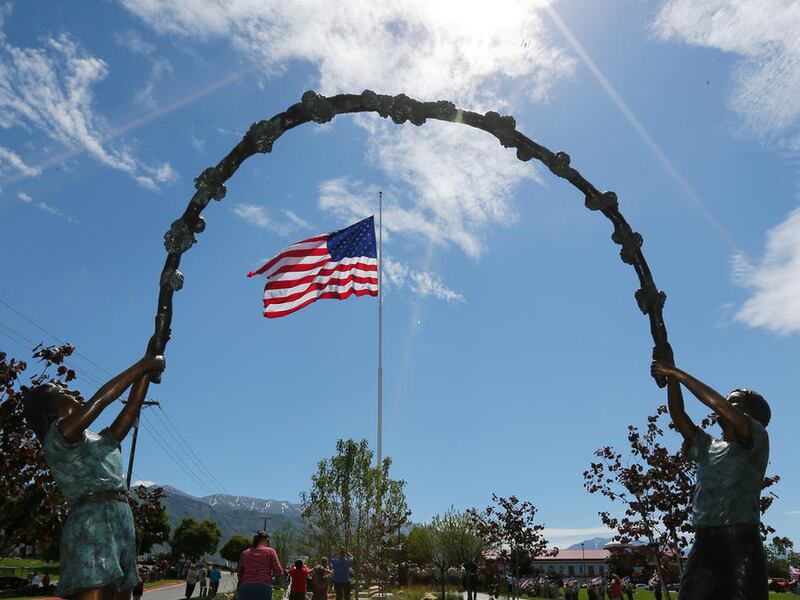 The flag-raising ceremony on Flag Day was part of a service dedicating an addition to the American Fork Seasons Cemetery as well as to formally open the Seasons Memorial Garden.