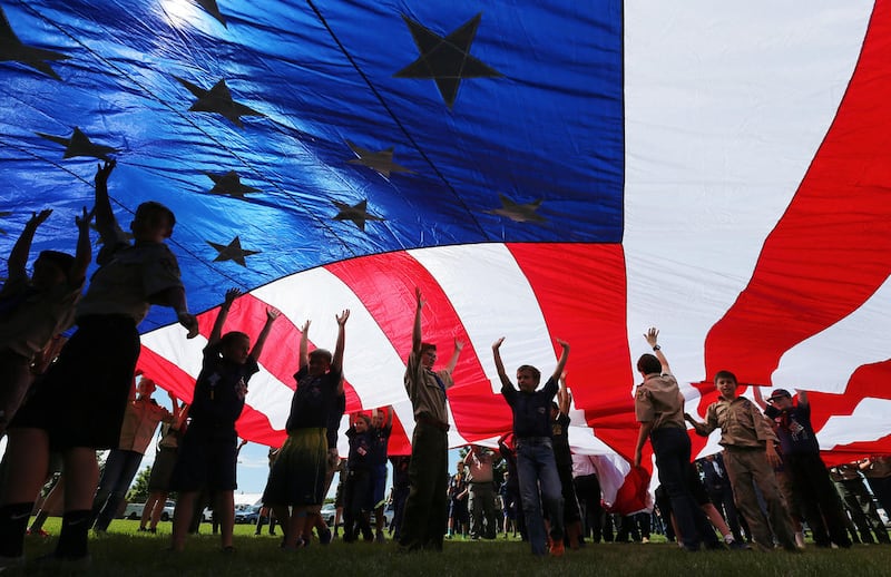 AMERICAN FORK — Two hundred American Fork Boy Scouts raised a 50-foot flag Tuesday, only to immediately lower it to half-staff in honor of the Orlando shooting victims.