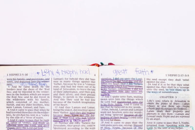 Starting then, I read my scriptures for 10 minutes every night. But again, mostly because Dad asked me to. However, I soon started to see the scriptures for what they were — a big story, made up of individual people's experiences with God — and I began to fall for the good word. I saw these people coming head to head with trials and their faith: Would they choose to believe or not? I saw that when they chose to believe in God — often when logical reasoning told them not to and when up against every kind of odd — God put them on top. Via their examples, I remember telling myself then, as a little 10-year-old, that I would always choose faith. I would be a believer, too. I felt my first personal connection to scripture then, and consequentially, for the first time in two years, I started studying for myself.