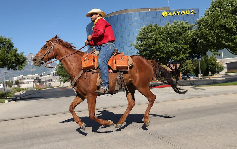 The Pony Express returned to Utah Sunday. Members of the National Pony Express Association re-create the Pony Express ride each June, using more than 700 riders and horses, riding 24-hours a day over 10 days, covering 1,966 miles. The riders started in Sacramento on Wednesday and will reach St. Joseph, Missouri on June 25, carrying historic vignette letters and personal letters. On Sunday, the riders traveled through Simpson Springs, Fairfield, Murray Park and This Is The Place State Park before heading to Wyoming.
