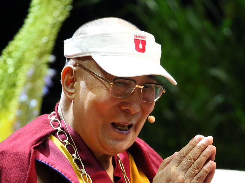 Earlier in the day, the Dalai Lama visited patients at the Huntsman Cancer Institute, Pershing said.