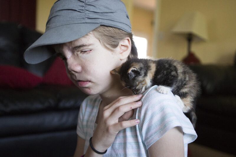 TAYLOR, Utah (AP) — Her family's two pet dogs zoomed around the living room, their paws drumming on the carpet as Brynnli Cherry cradled a kitten named Luna and explained her growing command of writing in Braille and doing math with an abacus.