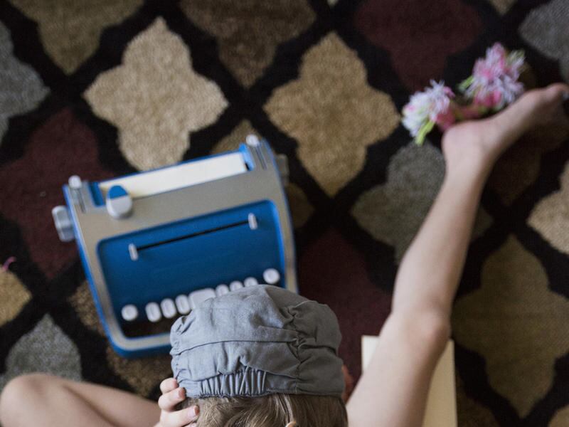 In the house, watching Brynnli use her Braille writer, her mom said, "She thinks she's a smarty pants because no one can see what she's reading or writing."