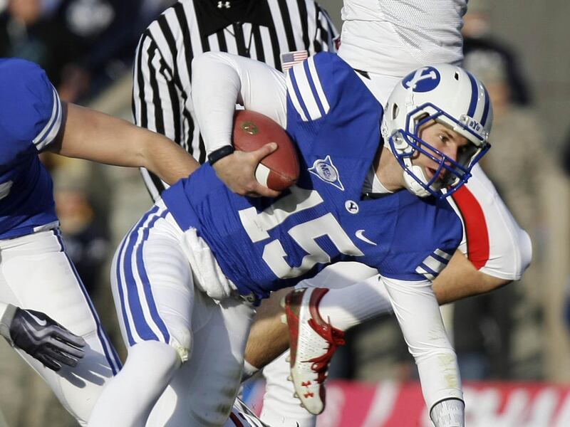 With a little more than one minute left, BYU trailed 10-9 and faced a fourth down and 18 from its own 12-yard line. Hall, then a sophomore, rolled out and completed a 49-yard pass to Austin Collie, giving the Cougars a fresh set of downs and setting up the game-winning touchdown with 38 seconds remaining. It’s one of those magical, iconic plays in BYU football lore.