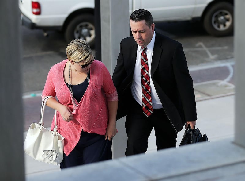 "We have two little girls who will miss him terribly, but we will never give up the fight," his wife Charla Johnson said outside the courthouse.