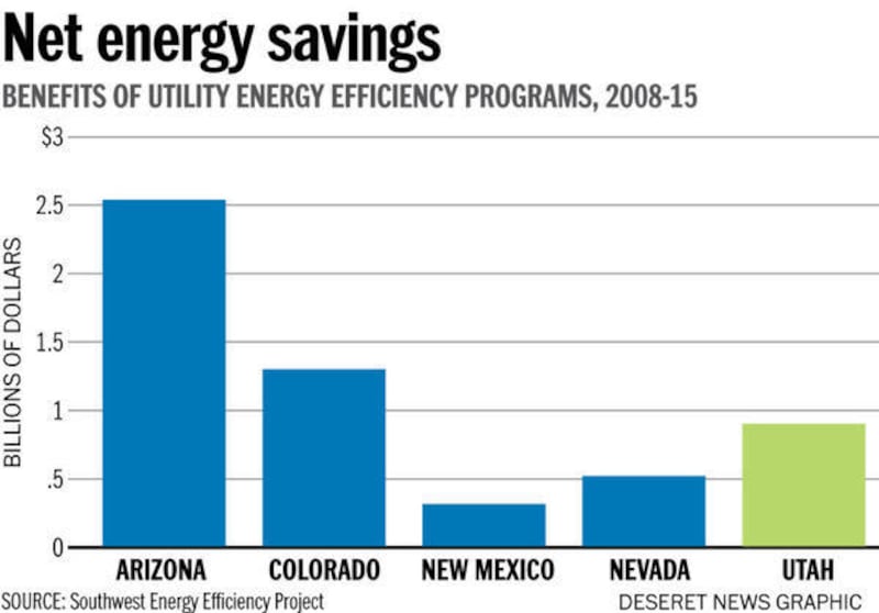 In Utah alone, Rocky Mountain Power customers saved nearly $1 billion during that time period because of energy efficiency programs, the report said.
