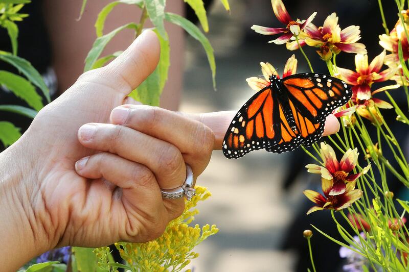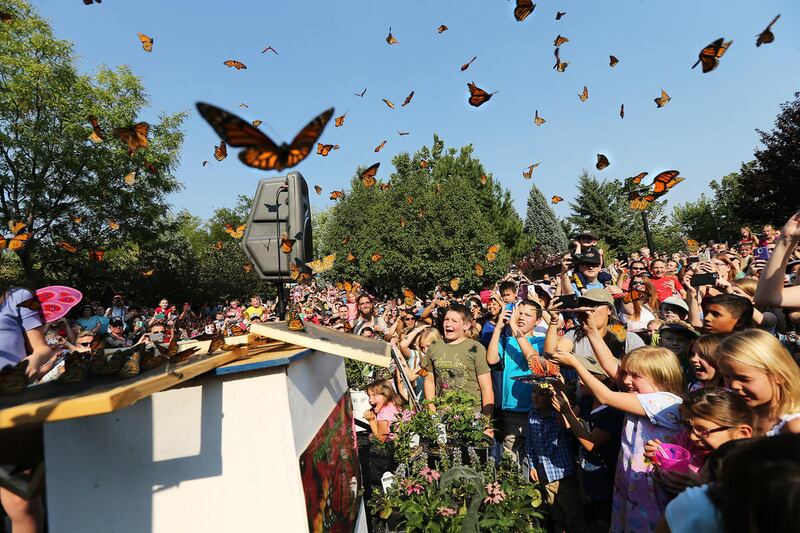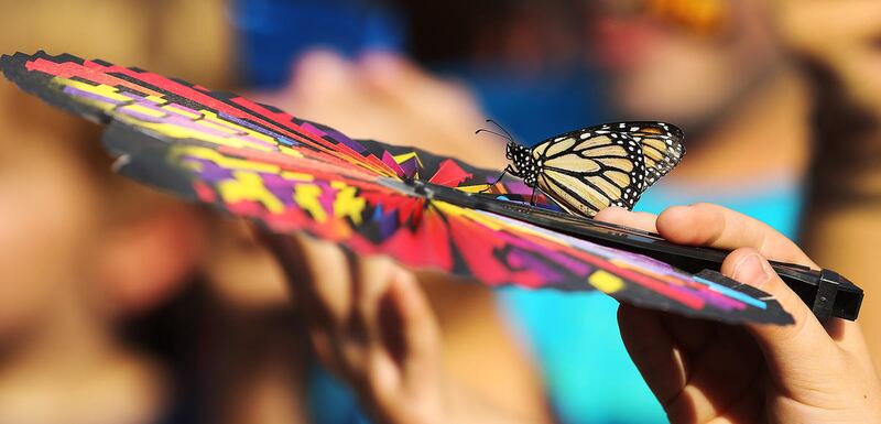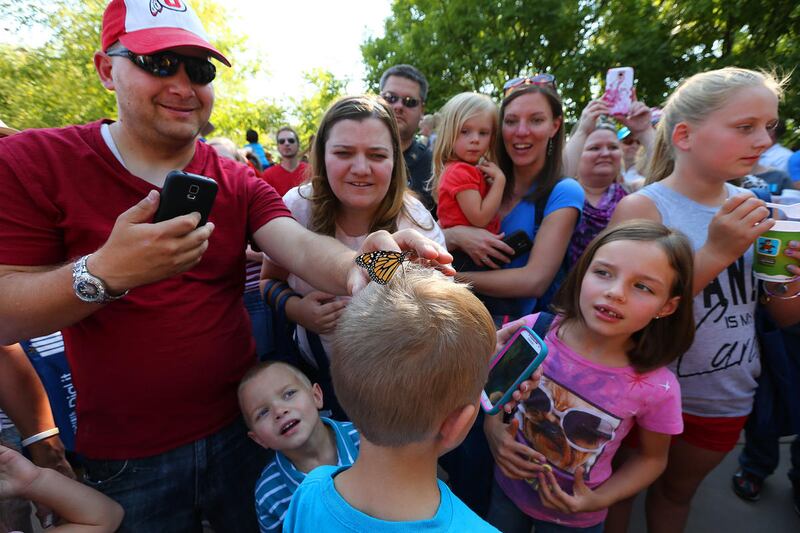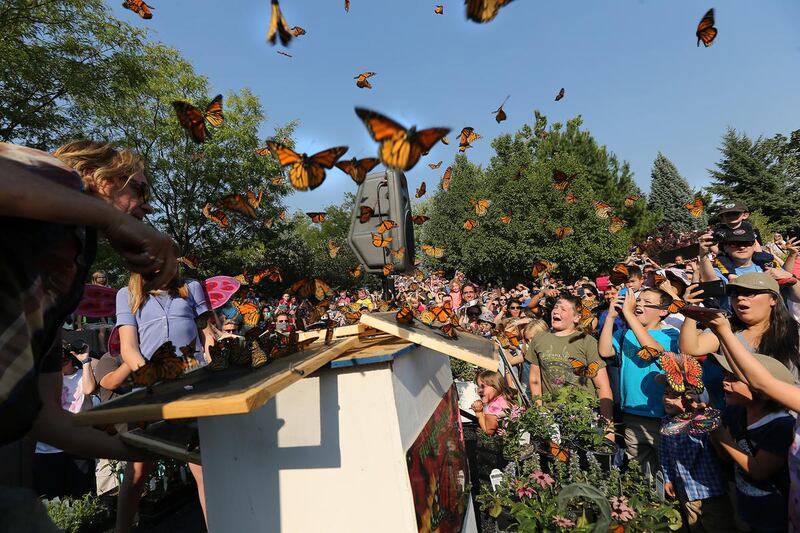 Grant and Amy Smith try to keep their son, Colby, still as a monarch butterfly rests on his head at the Jordan Valley Water Conservancy District’s Conservation Garden Park in West Jordan on Saturday. Hundreds of people turned out for the garden's fourth annual Party in the Park, where more than 500 monarch butterflies were released. In addition to the butterfly release, the party included live music, food trucks, kids’ crafts, animal encounters and educational booths. Attendees were also able to stroll the garden and see Utah-friendly plants and to learn about landscaping for Utah’s unique climate.