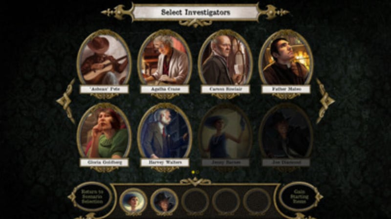 There are eight unique investigators to play in the game and each has a special ability. They also have a set of similar abilities but with different rankings. Some are good at fighting, athletics, mental and mythical challenges. Two vital stats are sanity and health. Run out of either of these and the game ends for all players.