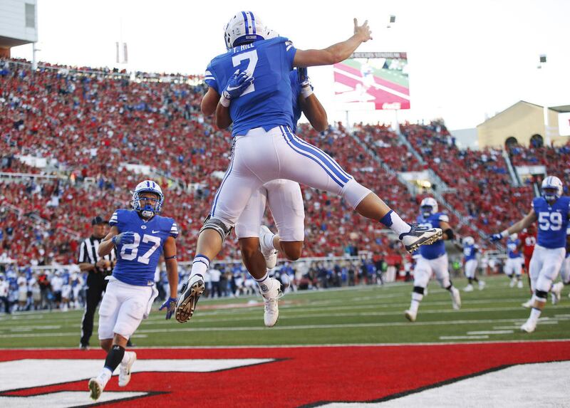 The Cougars came up with six Utah turnovers Saturday, including a pair of second-quarter interceptions by Kai Nacua. One of those picks led to BYU’s first touchdown of the night, capped by a 39-yard touchdown by Hill.