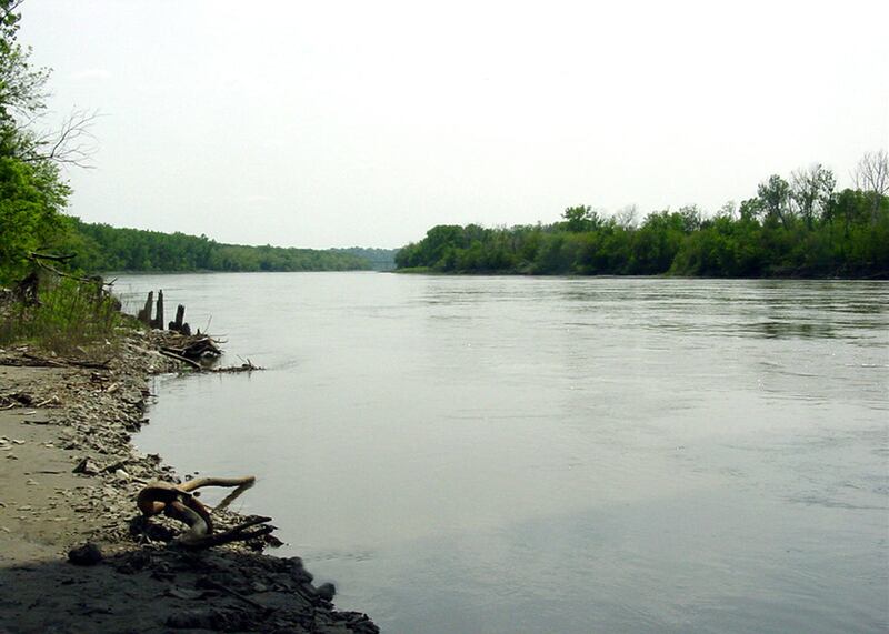 Unlike Jackson County, Missouri, where the Missouri River flows west to east, at this point the Missouri flows south, separating the historic sites of Kanesville, Iowa, from Winter Quarters, Nebraska.