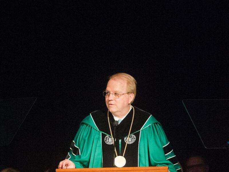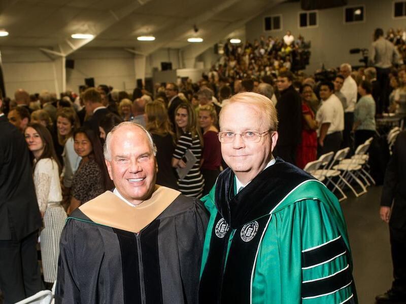 During the inauguration, the university's board of trustees awarded the Founders Medallion to Glade and Kathleen Knight. The liberal arts school's athletic teams are known as the Knights.