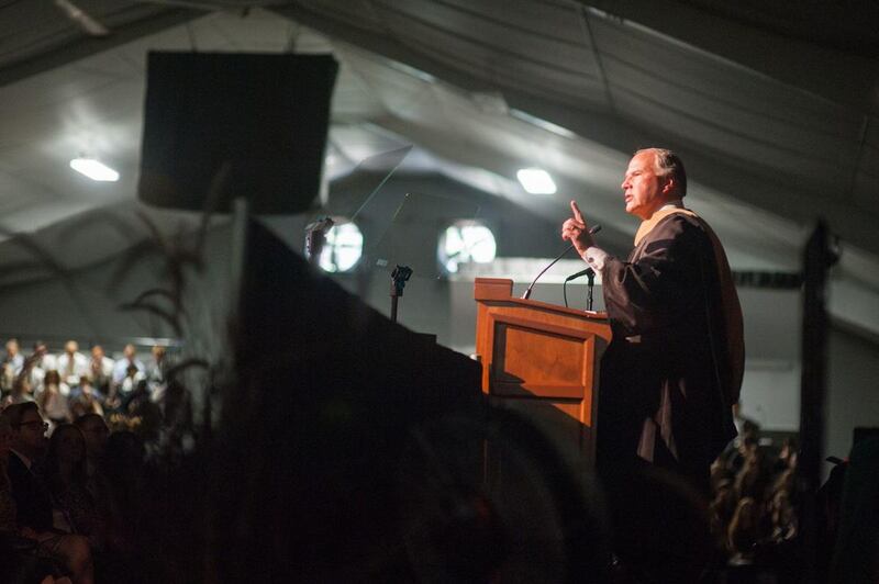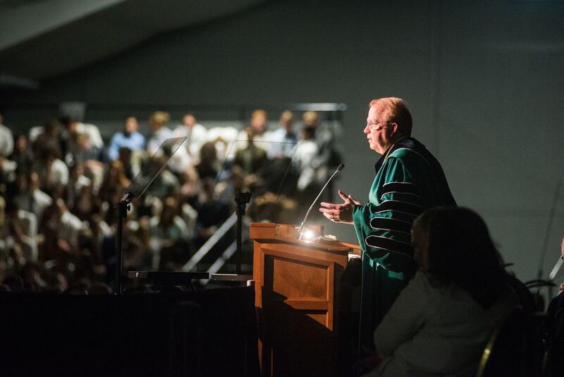 "A university is a place to learn," he said. "A good university is a place to learn how to learn. A great university is a place to learn how to learn what matters most. … The most important thing we can learn is to know God, and to learn that he knows you, and I don't mean you collectively, I mean you individually, because he knows you personally and cares about you that way."