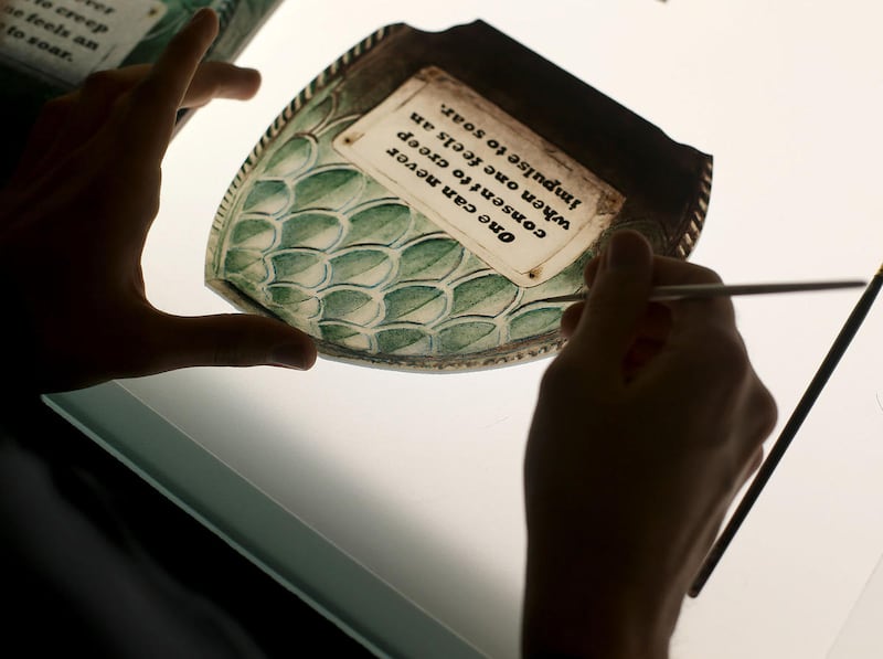 LEHI — In a room that smells like cloves, dozens of artists bend over illuminated tables with tiny paintbrushes, making painstaking progress on a project nearly 12 years in the works.
