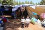 Addin sits outside her tent watching her two youngest children pour bottles of water over their heads, halfheartedly calling out to them to stop, but too tired to enforce her pleas. The baby’s diaper is soaked, but he’s laughing, so she sighs and shrugs. She’s distracted, partly by the kids but also by a profound weariness, her brown eyes staring into the distance as she speaks.