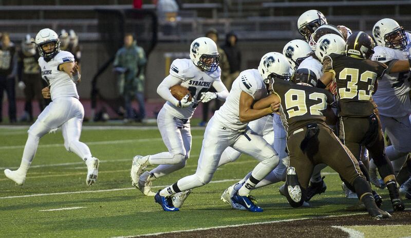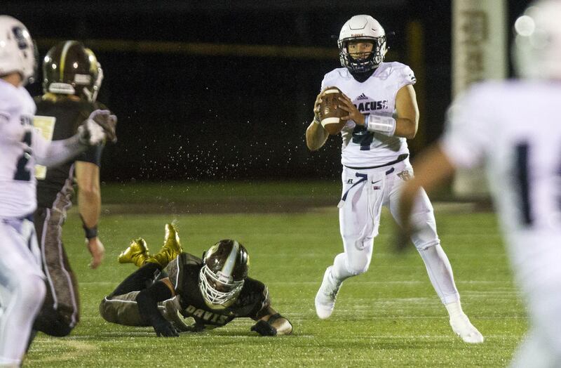 The Titans, who got a short TD plunge by junior quarterback Ty Metcalfe in the first period, rallied with a 33-yard field goal by Jayden Grose in the third quarter, a 37-yarder by Grose midway through the final period and a 21-yard touchdown pass from Metcalfe to Dallin Kirkman with 3:12 remaining in regulation. The game-tying score was set up by Brennon Jones' interception deep in Davis territory.