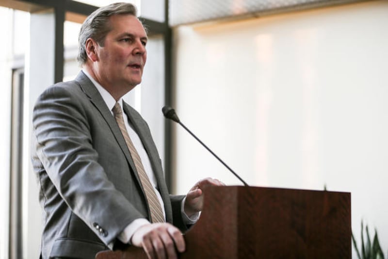 Doug Wilks talks to staff after being announced as the new editor of the Deseret News in Salt Lake City on Nov. 10, 2016. | Spenser Heaps, Deseret News