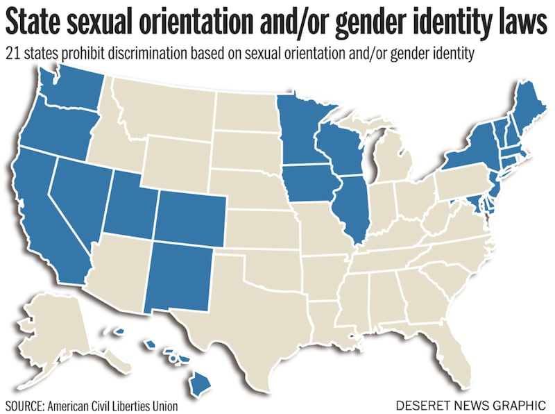 Even when SOGI laws include religious exemptions, as Utah's did, they cast belief in traditional marriage in a negative light, Anderson said. Fairness for All legislation defines discrimination as a refusal to hire, house or serve people from the LGBT community or participate in a same-sex wedding ceremony, and then exempts the actions of some religious groups.