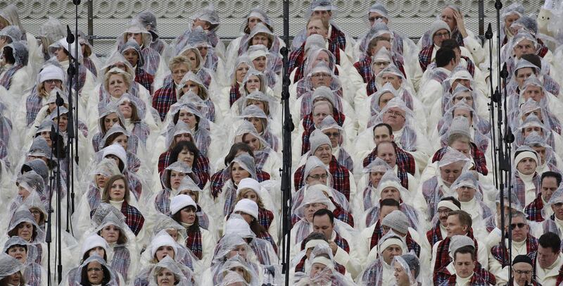 The Mormon Tabernacle Choir sang "America the Beautiful," and the Missouri State University Chorale sang "Now We Belong," in a ceremony that featured decidedly less star power than in 2013. At President Barack Obama's second inauguration, Beyonce sang the anthem, James Taylor sang "America the Beautiful," and Kelly Clarkson sang a powerful "My Country, 'Tis of Thee."