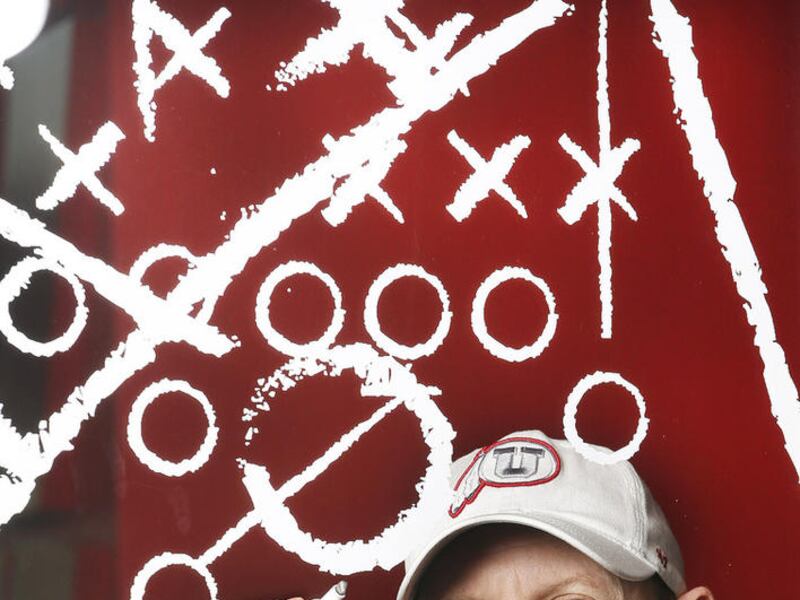 Everyone who spends time with Taylor tends to come away dazzled by his football acuity, passion and success. The new guy is a football junkie, even by football coaching standards. He’s a mad-scientist type who doodles plays on yellow legal pads so much that he goes through two or three pads a week. Twenty minutes after meeting a reporter for the first time he is slashing at a dry erase board with a black marker to show receiver routes and progressions and defensive reactions. At one point, he demonstrates with an imaginary football, eyes scanning downfield, feet set in the wider stance he likes quarterbacks to use.