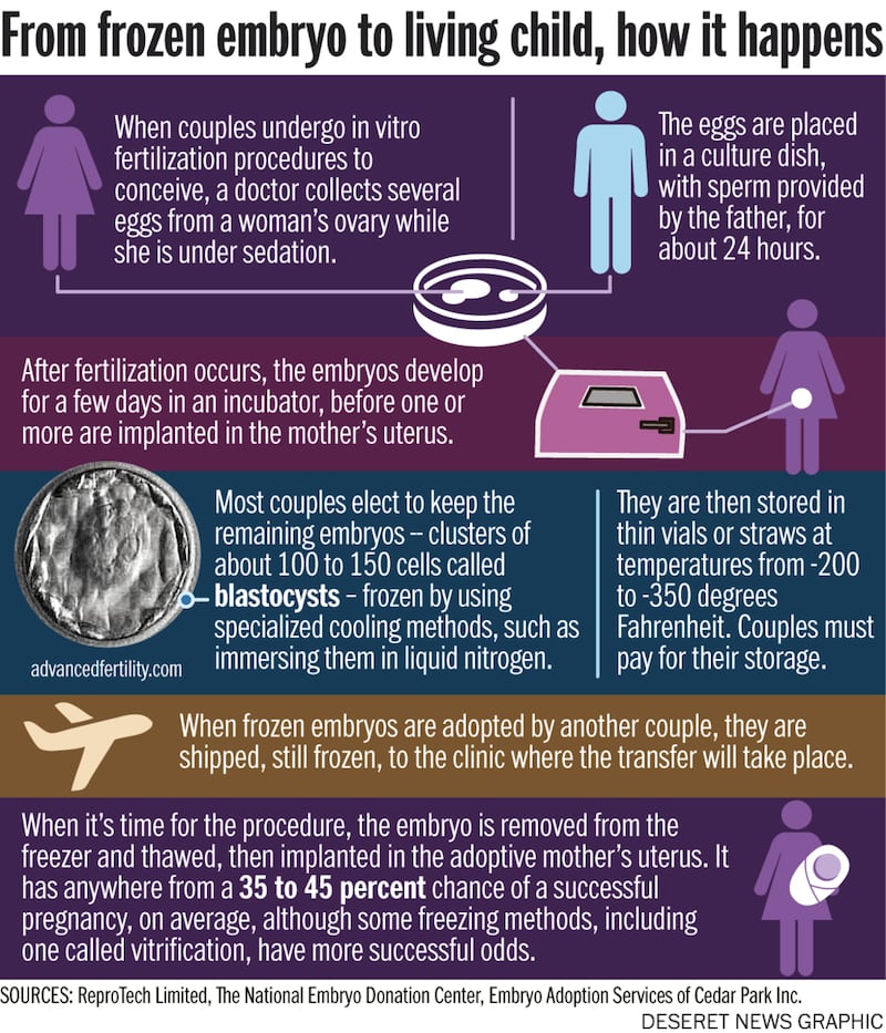 For hundreds of parents, however, a frozen embryo turned living child is a God-given blessing, and some Christians believe that for parents who cannot bring their embryos to life themselves, allowing their adoption is the only ethical solution.