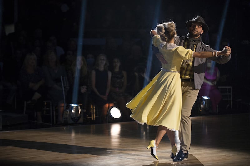 Stirling and Ballas danced the Viennese waltz for “Most Memorable Year Night” in honor of Stirling’s father, Stephen Stirling, who passed away due to cancer in January 2017. Stirling recalled her last moments with her father in a video shown before the performance.