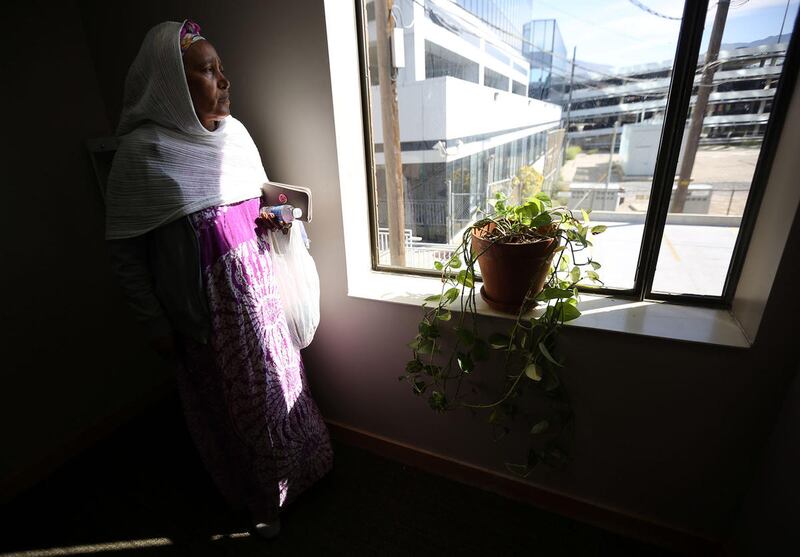 Christine Mukankusi, one of the knitting group’s most devoted members, lives in a bleak apartment complex in South Salt Lake City.