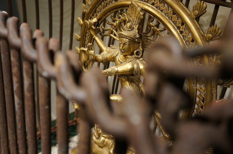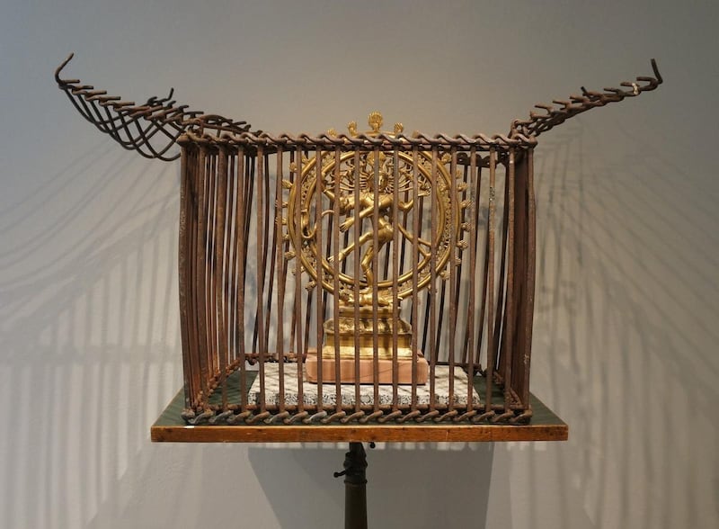 “I see them as attention-getters because most people are familiar with a Mary or a crucifix and may be familiar with a Krishna sculpture,” McEntire said. “What I try to do with my work is to use religious objects to create that participation in a discussion about the issues of our time.”