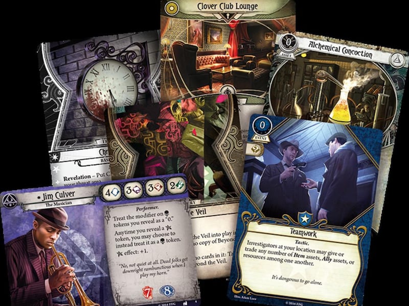 The Dunwich Legacy adds five new playable investigators to the game: Zoey Samaras the chef, Rex Murphy the reporter, Jenny Barnes the dilettante, Jim Culver the musician and Ashcan Pete the drifter. This time the rules for character deck development are more loose and players can build investigators drawing from multiple class specialities. Thank you, Fantasy Flight Games.