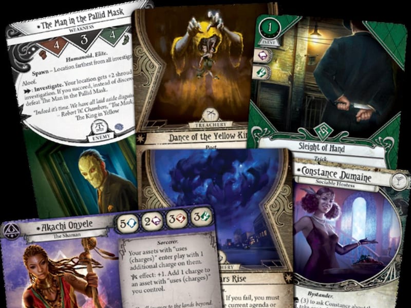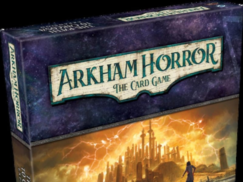 The second deluxe expansion for the Arkham Horror card game is The Path to Carcosa. In this storyline, a new theatrical play has come to the city of Arkham, Massachusetts, and it is all the rage. However by investigating further into its popularity, the players discover that a series of deaths, disappearances and outright insanity surrounds the play's presence.