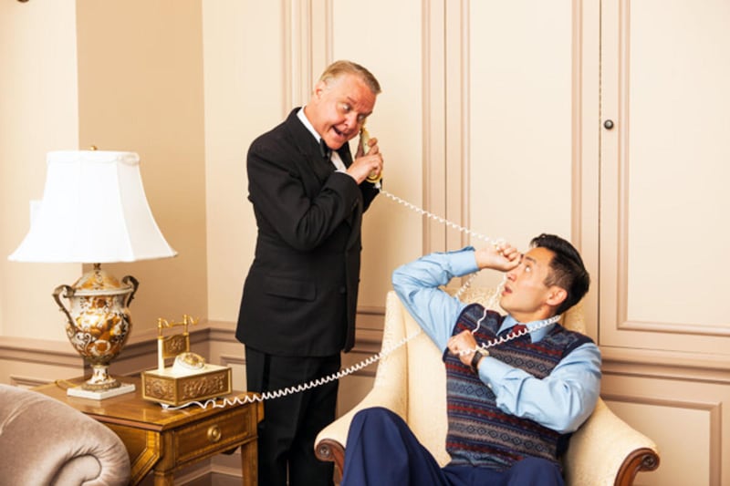 The play includes several bouts of slapstick and old-fashioned humor, including everything from drink spitting and face slapping to a head hit on a luggage cart and a hand accidentally rested on the bottom of a plunger. Beppo’s conversation with a tongue platter in the hotel suite is also quite entertaining.