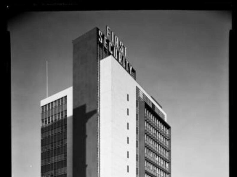 Beardall was on hand Tuesday night when new, LED signage on the building was lit for the first time. The signage, created by local firm YESCO, was designed to align with the historic feel of the 1950s-era building, the company said. The 12-story building is recognized by historians as the first "international-style" skyscraper built west of the Mississippi River.