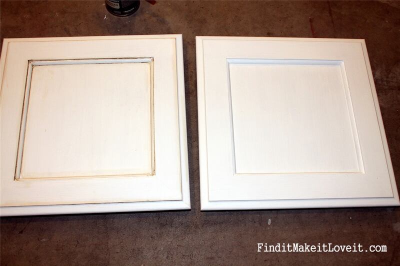 Applying a glaze is optional. It can be used on the entire cabinet surface, or not at all. We actually opted to use the glaze in just the bevels of each door. The door on the left is glazed; the door on the right is unglazed.