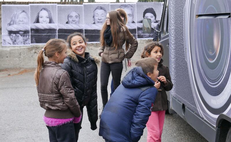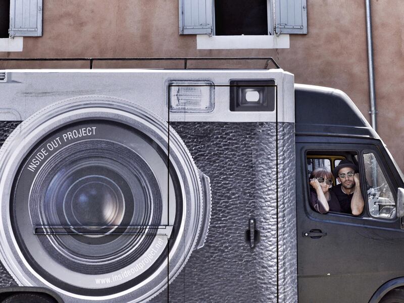 Over the course of 89 minutes, JR and Varda visit a dozen locations in a large transit van that has been modified to look like a giant camera. When people step into the back of the van, they find themselves in a portable photo booth, which prints out large format prints from a slit on the side of the vehicle. JR and Varda then use these prints to manufacture the murals.