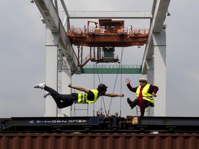 Later, JR and Varda offer similar treatment to a rural farmer who, thanks to modern technology, handles 2,000 acres on his own, and then they put together another tribute for a team of factory workers whose opposing shifts keep them from regular interaction. We visit the Pirou-Plage ghost town, where a half-finished tract of housing has deteriorated into a graveyard of graffiti-covered shells, and a dock where JR and Varda plaster portraits of the union members’ wives on the sides of shipping crates.