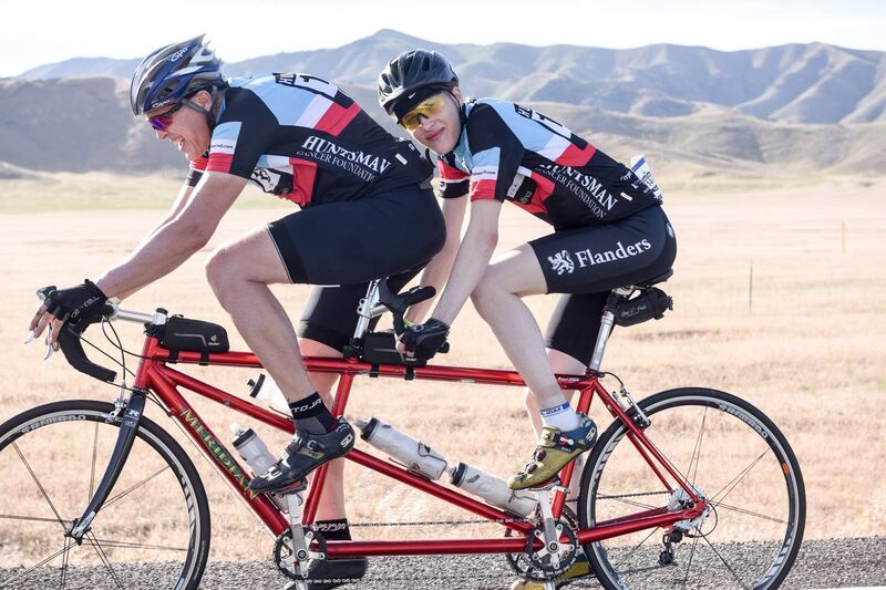 Some people knew what the Bishops had gone through — were going through. Word spread. When the people who organize the Huntsman 140, a cancer fundraiser from Delta to Salt Lake City, learned that Robert and Andrew had signed up for their ride, they waived the entry fee and gave them Huntsman jerseys to wear.