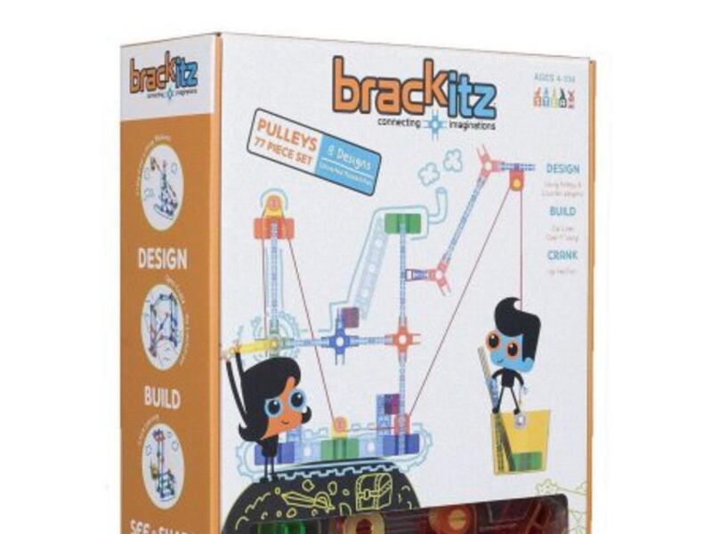 For the little engineers in the family, the Brackitz pulley set is a new construction toy that has won multiple awards for creativity. The hard but pliable plastic components snap together to create a variety of projects. What makes this set different from others are the parts: It contains multiple connectors and extensions along with pulleys, string, a crank and a bucket. Children as young as 4 can put together cool construction projects such as zip lines, cranes, elevators, drawbridges and much more. Complete plans for 10 projects come in the box.