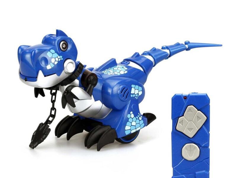 The Silverlit Train My Dino toy is designed to keep kids entertained for hours. A maker of electronic/robotic toys, Silverlit offers an electronic dinosaur pet that will roll around on carpet and flooring. A hand-held remote puts a child (or adult) in control of the rapid reptile. It will follow a person, roar, navigate a room with its built-in sensors, respond when petted on the head and attempt to return home when the correct button on the remote is pushed. Two modes of play include wild and controlled. The mouth even chomps about when the dinosaur gets excited.