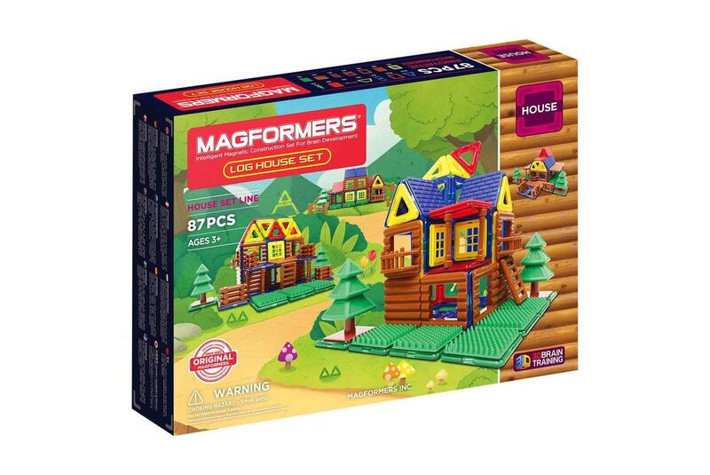 Magformers log cabin construction set is a trip down memory lane. Do you remember Lincoln Logs? Well, in 2017, the new line of log cabin toys comes with magnets. Magformers are color-coded construction shapes (such as squares and triangles) with embedded magnets that snap together easily and hold fast until pulled apart. Kids will enjoy 87 construction pieces consisting of four geometric shapes. The included guide features more than 10 building projects to work on. Add balconies, doors, windows and walls to your structures as well as ladders, trees and grass.
