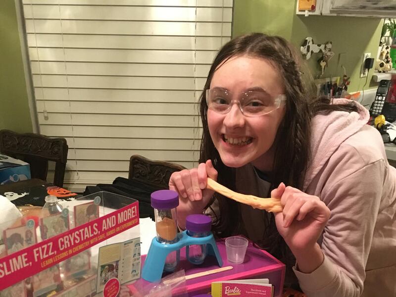 My 15-year-old daughter spent hours enjoying the experiment that creates color-changing putty. She loved it. But be aware the experiments are consumable. Once all six experiments are complete, the set will lose some of its shine. There are 25 permanent components such as test tubes, pipettes and a pair of safety glasses. Overall, I am excited there is chemistry set on the market for girls. Let's hear it for Barbie and the pipettes! $30