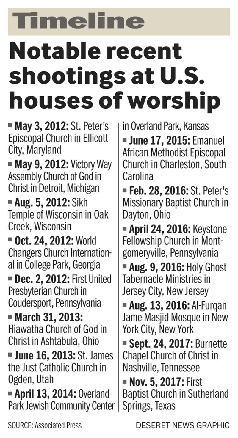 But the best response to violence is to draw closer to God, which involves reclaiming the space an attacker violated, Aten said. Although marred by shootings and bomb threats, sanctuaries remain a source of comfort to the people gathered there.