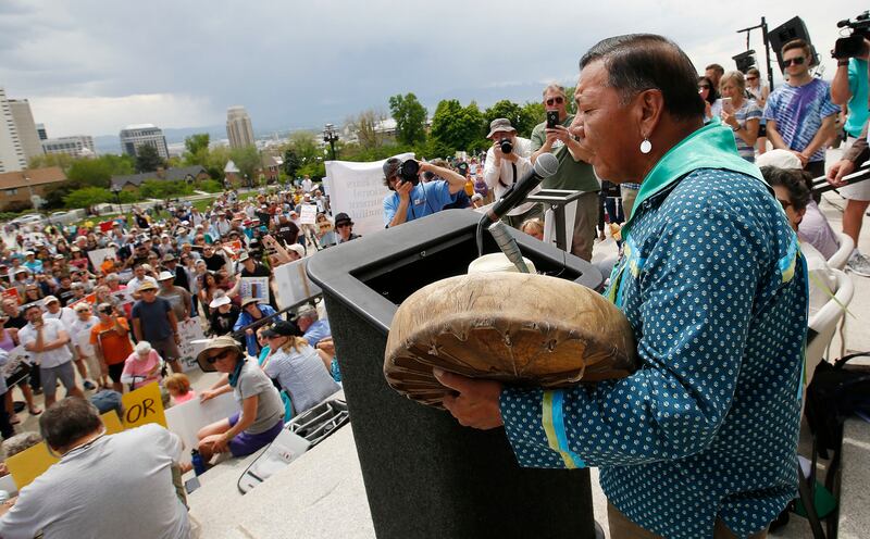 May 6, 2017 — Hundreds of people converge at the Utah Capitol to show their support for the Bears Ears and Grand Staircase-Escalante national monuments. Meanwhile, opponents gathered at Pioneer Park in Blanding.