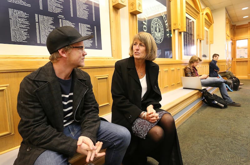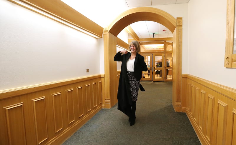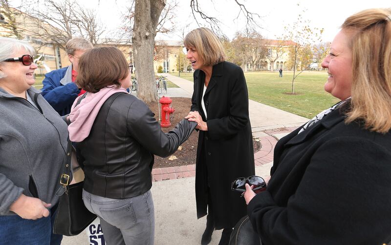 LOGAN — It has become a common sight on the Utah State campus: a tall, slender woman jogging from room to room and building to building in a skirt and high heels, bags and papers in hand.
