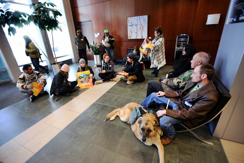 But the group decided to cooperate with building security and instead peacefully sat in the lobby for 20 minutes before a few members met with a representative from Hatch's office.