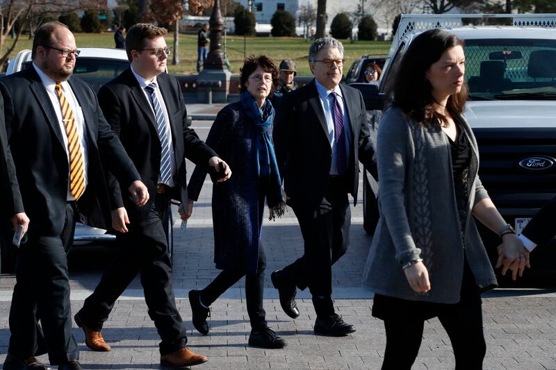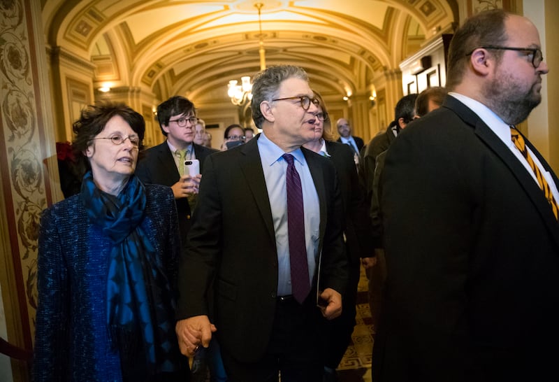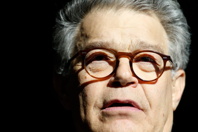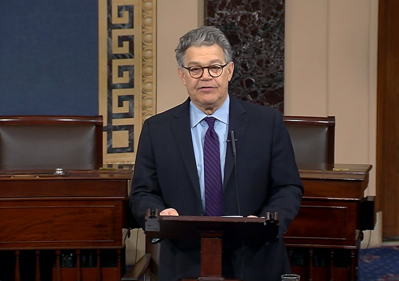 Franken noted that he was being forced out while President Donald Trump — who has been accused of worse offenses and bragged on a leaked "Access Hollywood" videotape of grabbing women by their genitalia — emerged unscathed. Trump has also endorsed Alabama GOP Senate candidate Roy Moore, who has been accused by multiple women of sexual misconduct with them when they were teens and he was a deputy district attorney in his 30s.