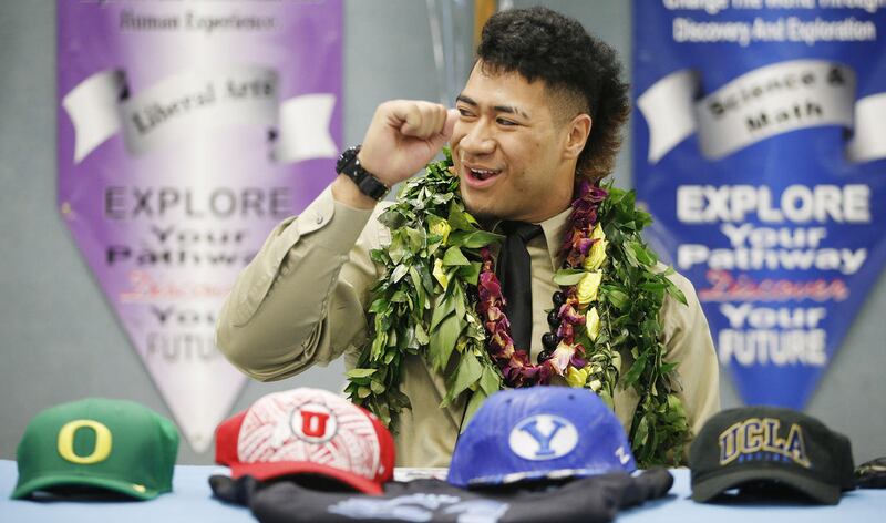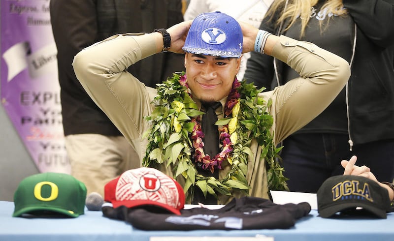A humble and immensely grateful Sam Tofa stood behind his son, Alden Tofa, as he formally announced for, and then signed a National Letter of Intent to play for BYU on Wednesday morning.